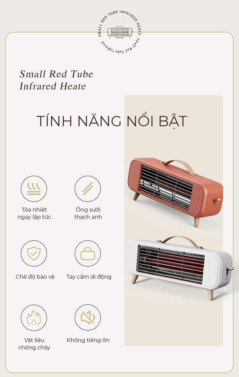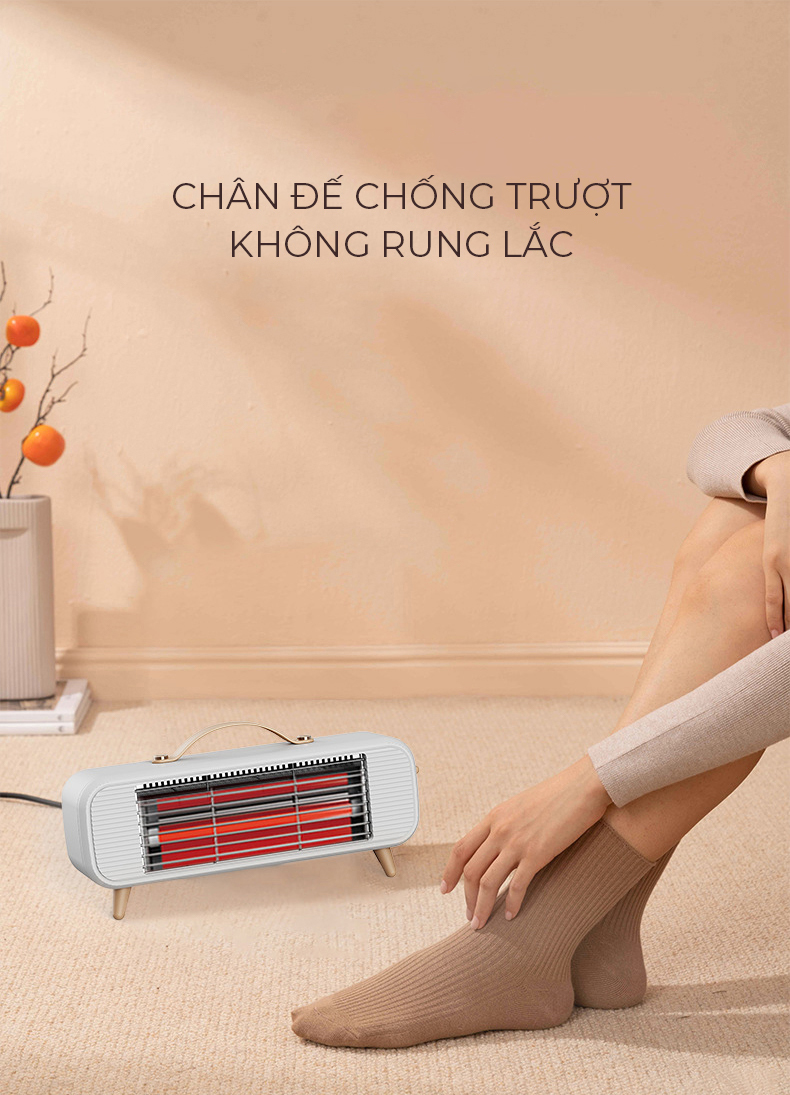 Thiết kế nhỏ gọn, tiện dụng Sưởi ấm nhanh, không gây tiếng ồn 3 mức phát nhiệt Có tính năng quay đảo hướng phát nhiệt, phạm vi phát nhiệt rộng Lưới tản nhiệt thiết kế