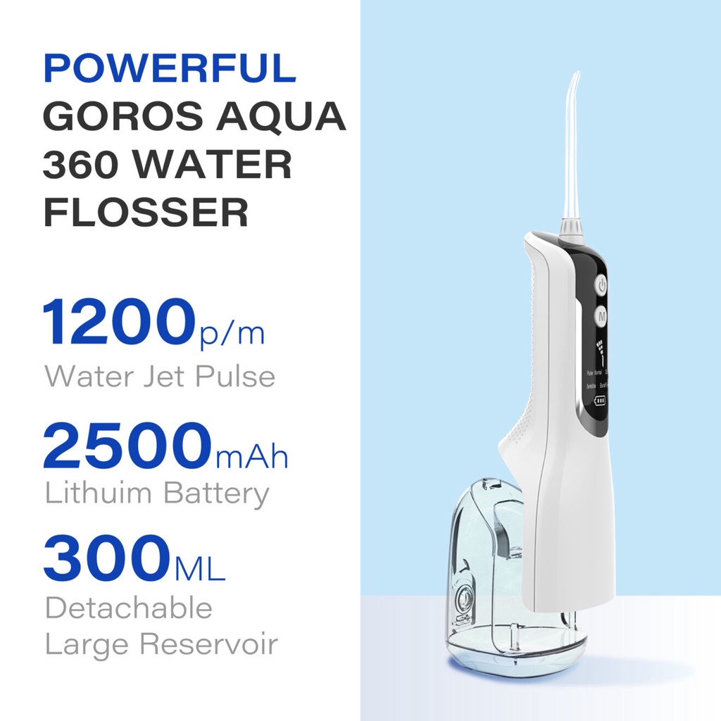 ✨Máy Tăm Nước Cầm Tay GOROS Aqua 360 Water Flosser (Màu Trắng) - Hàng Chính Hãng