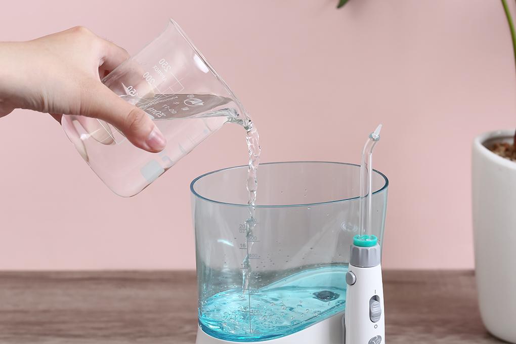 Máy tăm nước dùng trong gia đình Dung tích bình chứa nước 600ml Điện áp 100-240V Tần số 50/60Hz Công suất 18W Gồm 6 đầu tăm 10 mức áp lực nước