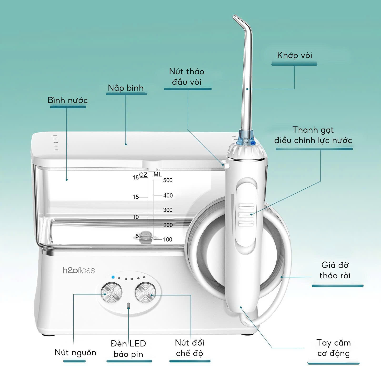 Tăm Nước Chính Hãng H2ofloss HF-9P - Phiên bản nâng cấp từ HF6 - H2ofloss sáng lập bởi cựu kỹ sư của Waterpik với mong muốn tạo ra 1 sản phẩm tốt như Waterpik nhưng