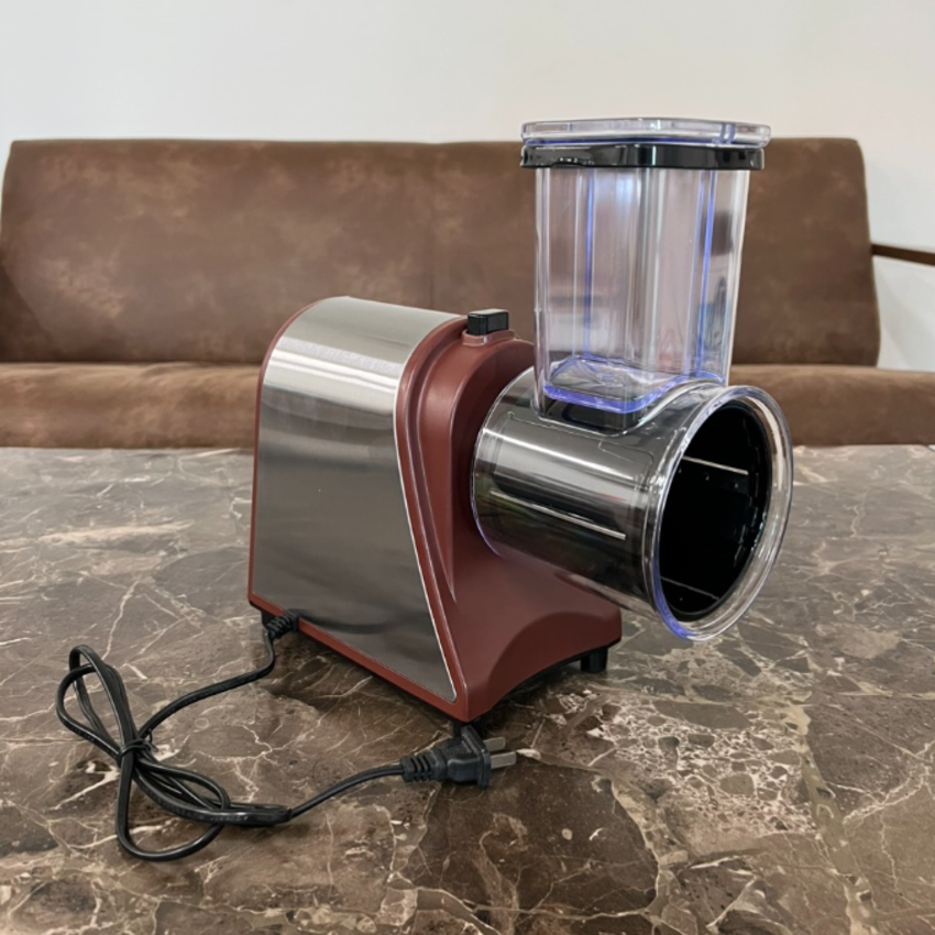 - Đa phần các dòng máy cắt rau củ quả gia đình có thiết kế nhỏ gọn, trọng lượng vừa phải. Bạn có thể đặt máy ngay trên kệ bếp hoặc mặt bàn để thao tác.