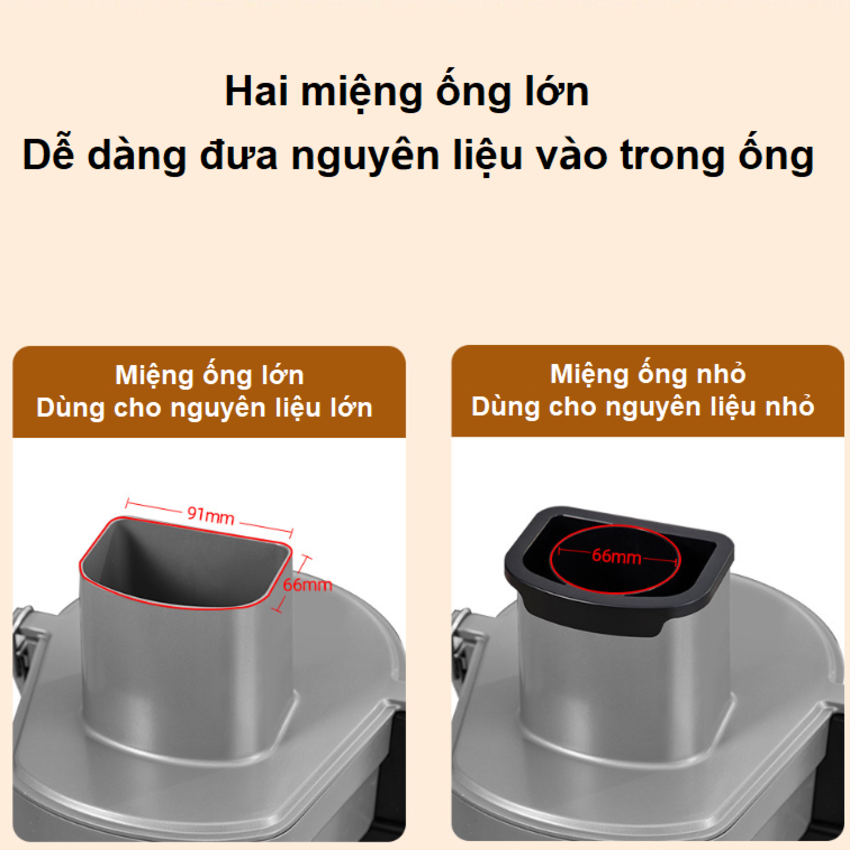 - Miệng ống lớn, giúp cắt nhiều nguyên liệu