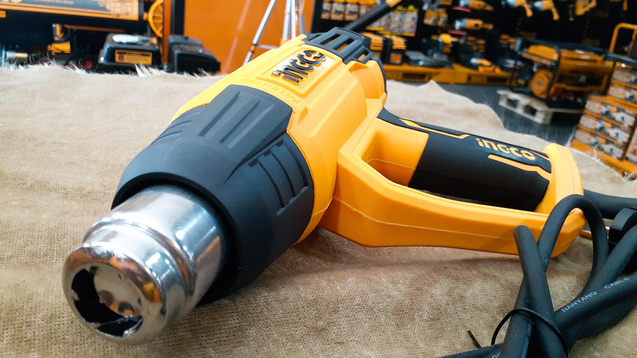 Máy thổi hơi nóng INGCO HG200028 được tặng kèm bộ phụ kiện như hình, mạnh mẽ với công suất 2000W, là 1 trong những máy thổi nhiệt chất lượng nhưng có mức giá rẻ, luôn nằm trong danh sách bán chạy. Ưu điểm của model này là được làm từ chất liệu nhựa ABS nên sở hữu độ rắn chắc cao, chịu nhiệt tốt, chống chịu được sự mài mòn trong suốt quá trình sử dụng, chống biến dạng khi bị tác động mạnh giúp bạn yên tâm sử dụng sản phẩm trong một thời gian dài mà không lo các vấn đề hư hỏng thường gặp như các loại máy thổi hơi nóng thông thường khác