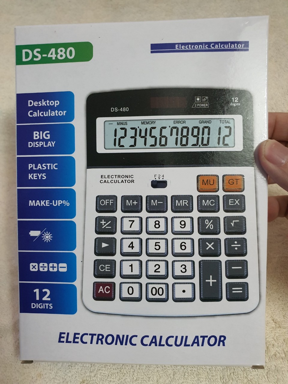 Máy tính mini cầm tay DS-480 dùng pin 3A và năng lượng mặt trời, màn hình lớn, gồm 12 chữ số dễ nhìn