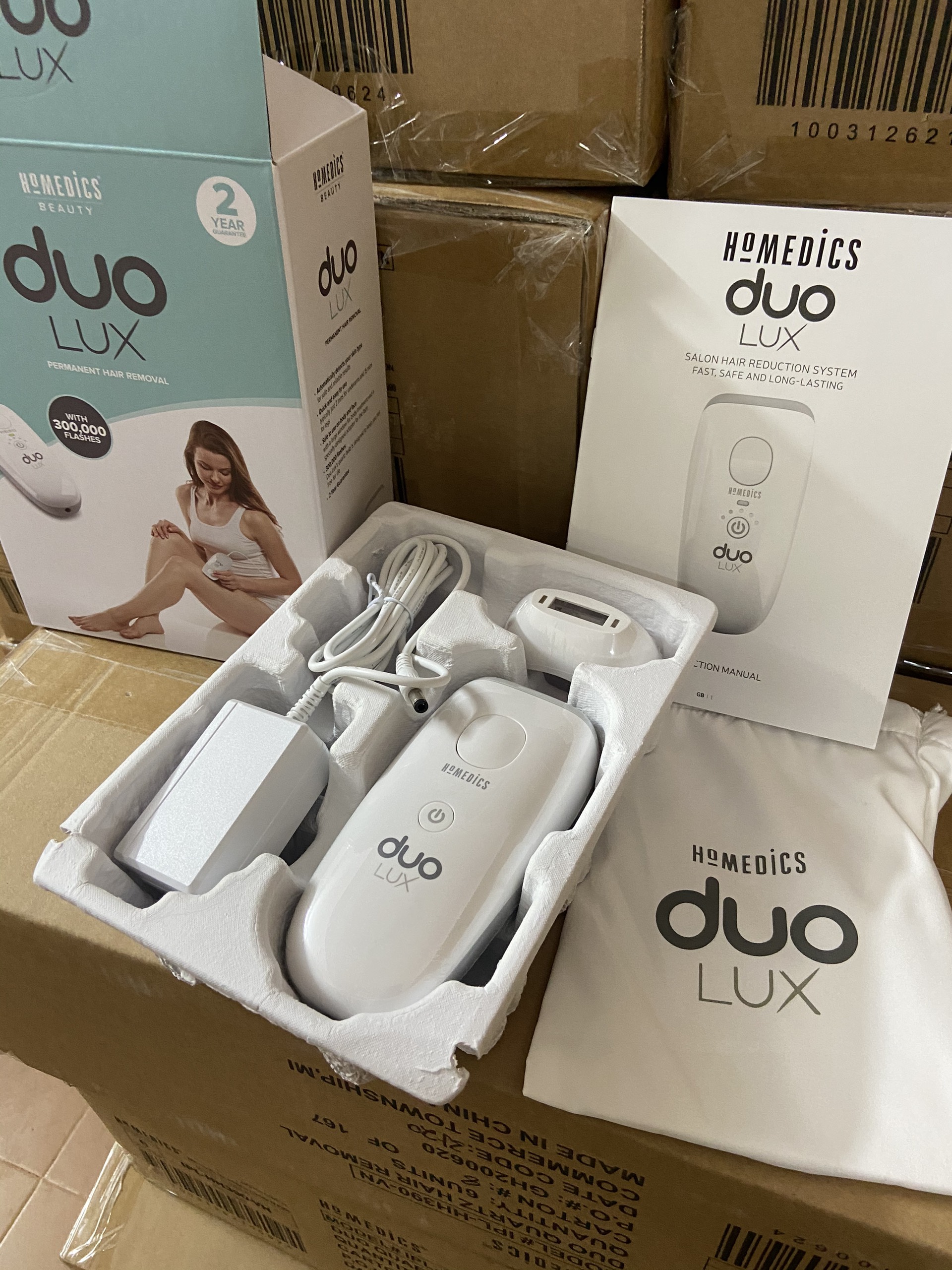 - Tại HoMedics, vẻ đẹp và sự an lành luôn song hành. Đó là lý do tại sao Nhóm làm đẹp của chúng tôi yêu thích thiết kế công nghệ làm đẹp khiến bạn cũng cảm thấy tốt. Nhiệm vụ của chúng tôi là điều chỉnh công nghệ thực sự mà họ sử dụng trong tiệm, để bạn sử dụng tại nhà - với kết quả chất lượng tương tự. HoMedics Duo LUX IPL MODEL : IPL-HH390-LUX Thiết bị triệt lông Duo Lux IPL của HoMedics là một thiết bị triệt lông tại nhà dễ sử dụng. Công nghệ huỳnh quang tiên tiến (AFT) Freeglide và Intense Pulse Light (IPL) cung cấp các phương pháp triệt linh hoạt đem lại hiệu quả cao nhất trong các công nghệ triệt lông. Năm cấp độ cho phép tùy chỉnh có kiểm soát đối với các bộ phận khác nhau của cơ thể và từng vùng da khác nhau . Sử dụng dễ dàng với các vùng da nhậy cảm như vùng mặt , vùng bikini với đầu bắn chuyên biệt giành cho vùng da này. THÔNG SỐ KỸ THUẬT