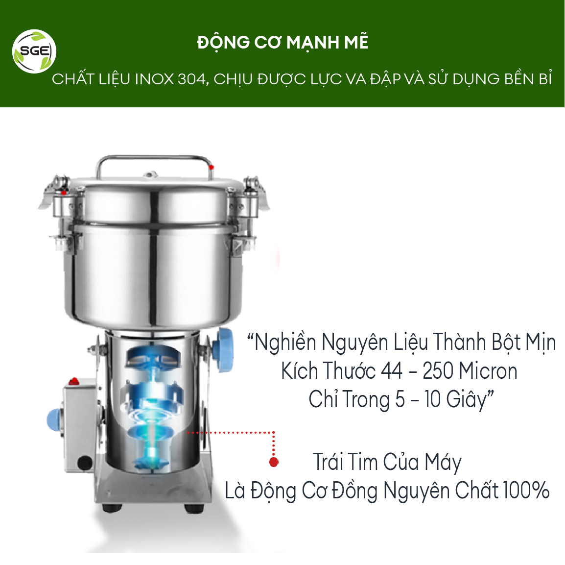 Máy xay dược liệu hay máy xay bột mịn PG (Grinding Machine) khác biệt hơn với động cơ và 3 lớp lưỡi dao, nghiền nguyên liệu thành bột mịn kích thước 44 – 250 micron chỉ trong 5 – 10 giây. Máy thích hợp cho việc chế biến để nâng cao giá trị của sản phẩm. Máy xay nhanh với tốc độ cao, ngày càng được ưa chuộng rộng rãi.