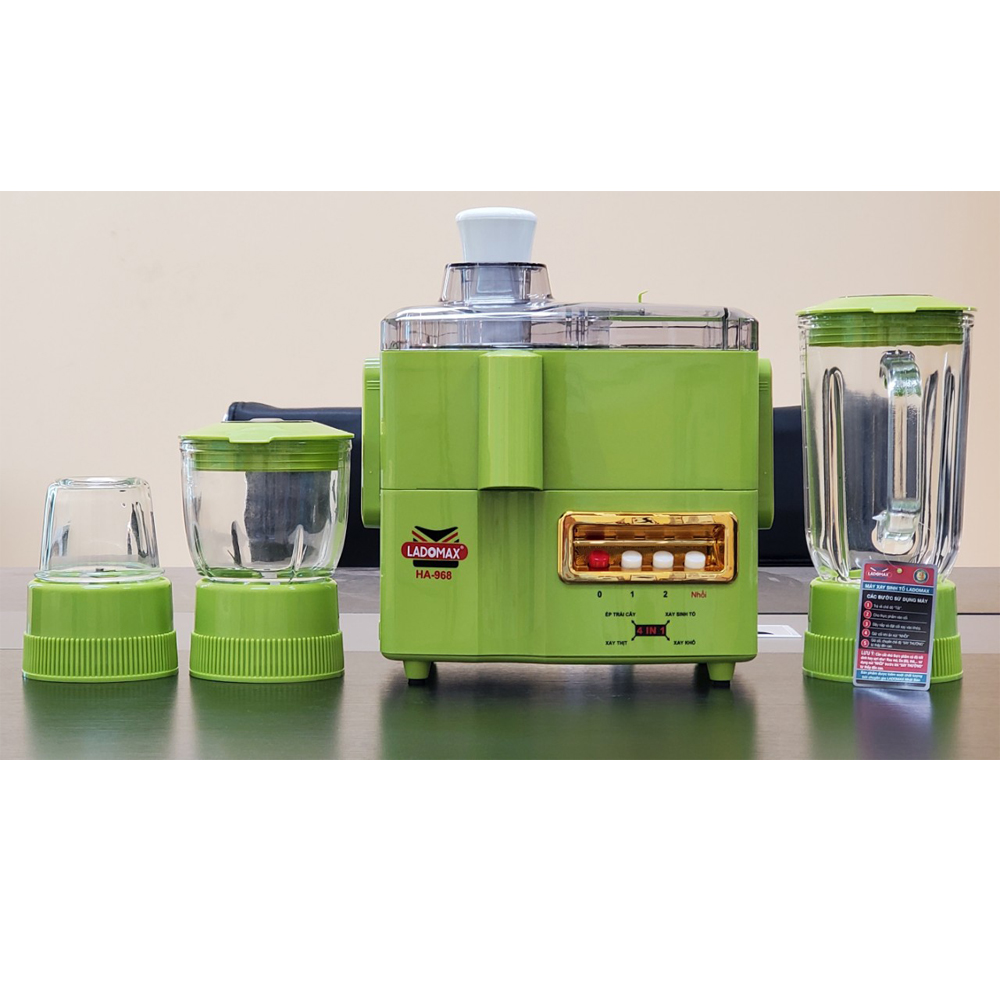 Máy xay đa năng Ladomax có nhiều cối riêng để xay sinh tố, thịt, xay tỏi và ép trái cây | HA-968