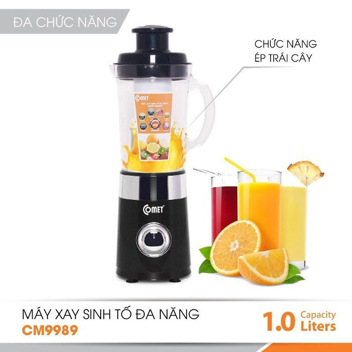 ✨Máy xay ép sinh tố đa năng kháng vỡ COMET CM9989 - 1 Lít - Hàng Chính Hãng