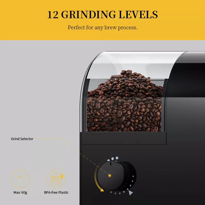 Máy xay hạt cà phê Espresso cao cấp Shardor BD-CG018 Hệ thống nấc điều chỉnh cỡ xay linh hoạt, tiện dụng cho mọi nhu cầu pha chế - Để có được tách cà phê Espresso