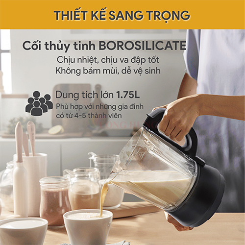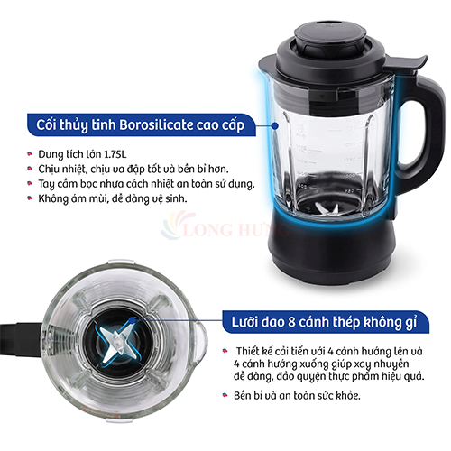 Máy xay nấu đa năng Bluestone BLB-6033 Công suất xay: 800W; Công suất nấu: 800W 6 chế độ gia nhiệt: sữa hạt, sữa đậu nành, hâm nóng/giữ ấm, cháo, súp, sữa bắp. 3 chế độ không gia nhiệt: sinh tố detox, sữa lắc, xay nhồi/làm sạch. Dung tích cối thủy tinh: 1.75L (Dung tích tối đa khi xay là 1.75L, dung tích tối đa khi nấu là 1.2 đến 1.4L) Thân máy: nhựa PP. Sản phẩm có tính năng hẹn giờ tối đa 12 tiếng. Tính an toàn cao với chân đế chống trượt, chỉ hoạt động khi lắp cối đúng khớp và tự ngắt khi quá tải. Sản phẩm có tích hợp thêm nút tăng, giảm thời gian và tốc độ xay, giúp người dùng linh hoạt trong việc điều chỉnh thời gian và tốc độ xay thủ công phù hợp với từng loại nguyên liệu (thời gian xay tối đa: 5 phút, 9 mức tốc độ). Đặc biệt, sản phẩm có tính năng ghi nhớ chương trình đang chạy trong trường hợp cúp điện/lỏng phích cắm tối đa 25 - 30 phút. 9 chương trình được cài đặt sẵn: sinh tố detox, cháo, súp, sữa đậu nành, sữa bắp, sữa hạt, sữa lắc, làm sạch, giữ ấm đáp ứng đa dạng nhu cầu của người dùng. Công suất xay nấu lên đến 800W kết hợp lưỡi dao 8 cánh dễ dàng xay nhuyễn thực phẩm. Cối xay được làm bằng chất liệu thủy tinh Borosilicate cao cấp, bền bỉ và tăng tối đa khả năng chịu nhiệt. Tính năng cảm biến thông minh giúp máy ngừng hoạt động khi cối xay bị lệch hay nắp bị hở, đảm bảo an toàn cho cả gia đình. LƯU Ý KHI MUA HÀNG Cảm ơn quý khách đã quan tâm đến sản phẩm bên shop, quý khách vui lòng dành ít thời gian đọc kĩ các thông tin sau: ️ Shop hỗ trợ phí vận chuyển trong vòng 7 ngày (kể từ ngày mình nhận hàng), sau 7 ngày shop chỉ hỗ trợ khách bảo hành (phí vận chuyển khách trả) ️ Shop nhận đổi trả trong trường hợp hàng sai mẫu, size, màu do shop gửi. Bên shop chỉ giải quyết khiếu nại khi quý khách có video clip khi mở/nhận hàng. ️ Đối với hàng chính hãng, khách hàng cần liên hệ lại với shop sau khi nhận được hàng để được nhân viên hỗ trợ xuất hóa đơn vat để bảo hành sản phẩm tại trung tâm bảo hành từ hãng. Bảo hành đối với sản phẩm chính hãng, quý khách trực tiếp mang sản phẩm bảo hành tới trung tâm bảo hành. Không nhận đổi trả khi sản phẩm bị hư hại do tác động ngoại lực từ người mua như móp, bể, trầy xước, nổ điện, rớt nước, rách tem bảo hành, không đầy đủ phụ kiện và hộp. Vì lượng hàng hoá nhiều shop không nhận đổi trả trong trường hợp khách không thích, không ưng màu, chất liệu; quý khách vui lòng đọc kĩ mô tả và xem hình ảnh cụ thể; nếu cần hãy chat với shop để được tư vấn.