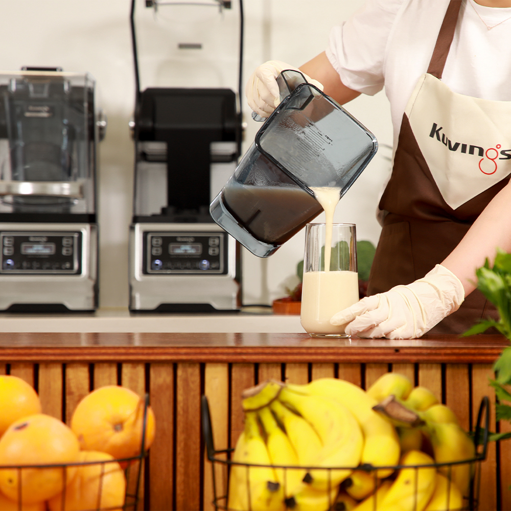 Máy xay sinh tố tự động hút và xả chân không dành cho kinh doanh hiệu Kuvings hoạt động liên tục 3 phút một lần xay và xay được 200+ ly mỗi ngày, gồm 1 cối xay với công suất cực mạnh 3.5 HP – 32,000RMP, 35 công thức tối ưu hóa cho menu quán cà phê, sinh tố được tích hợp sẵn cùng với 5 chế độ nhớ, dao xay cao cấp chuyên dụng cho kinh doanh không sinh nhiệt với công nghệ xay 3 chiều trong môi trường chân không cho nước sinh tố mịn hơn, màu sắc tươi hơn, chậm tách nước, ít bọt và giữ được nhiều Vitamin, Enzym trong rau củ quả. Bảng điểu khiển một chạm cảm ứng để điều chỉnh 5 chế độ xay tự động, chế độ xay nhanh, chế độ xay thủ công và nhồi, tự động đóng mở nắp, nắp chống ồn, chế độ tự động ngắt điện an toàn khi quá tải hay quá nóng và khóa an toàn khi gắn cối xay không đúng cách, có chế độ tiết kiệm điện tự động, thuận tiện sử dụng kinh doanh nhà hàng, quán bar, quán cafe, khách sạn, màu Inox.