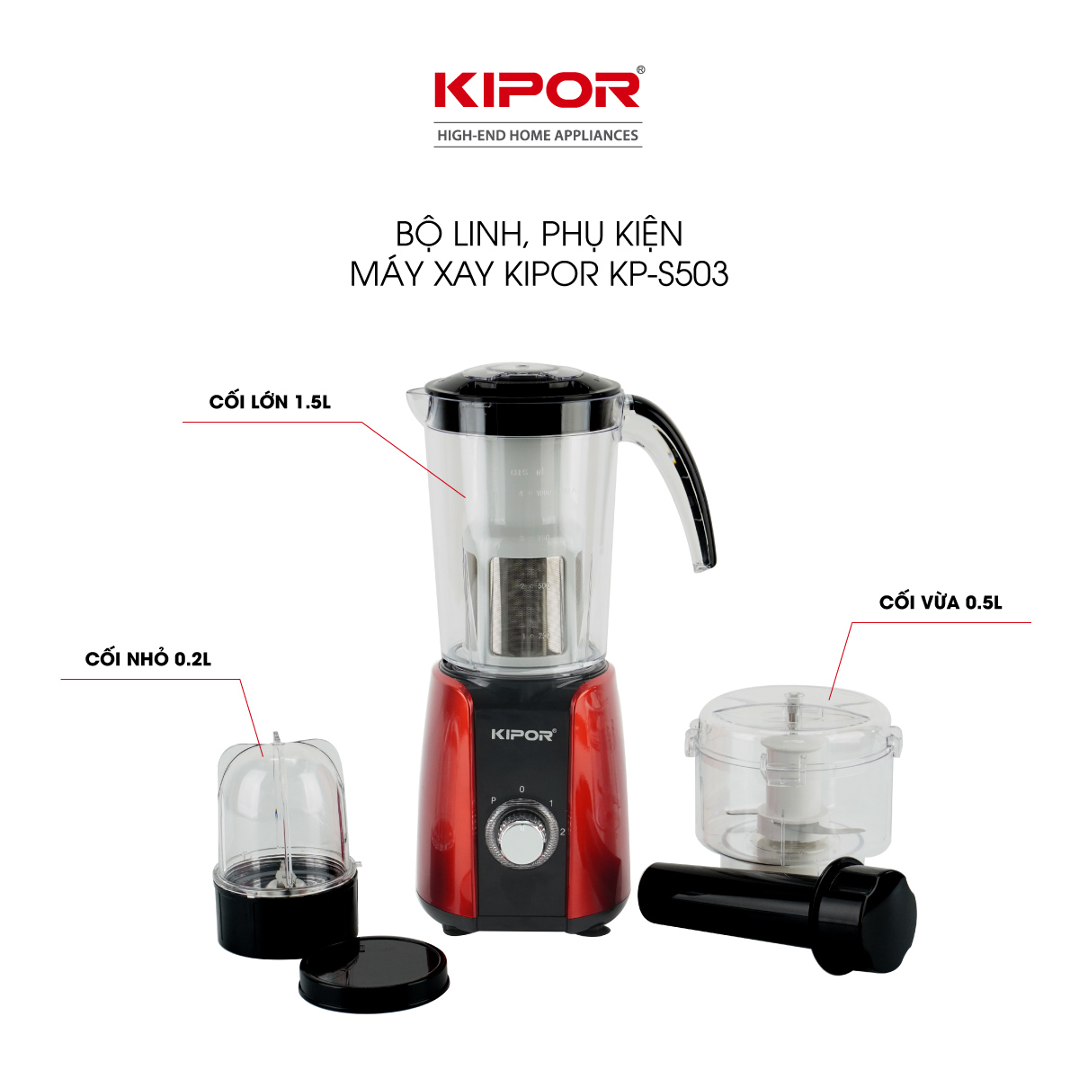 ĐẶC ĐIỂM NỔI BẬT - Máy được trang bị 3 cối xay: Cối sinh tố dung tích 1.5 lít, cối xay thịt dung tích 0.5 lít, cối xay khô dung tích 0.2 lít. - Động