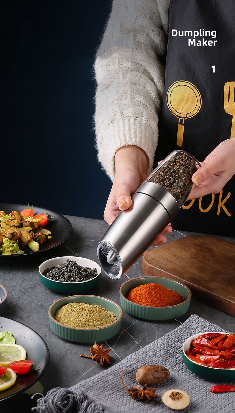 Máy Xay Tiêu Cầm Tay Tự Động Chạy Pin Kunbe - Cối Xay Hạt Gia Vị Có Đèn Led, Lõi Mài Gốm Ceramic Cao Cấp, Tiện Dụng