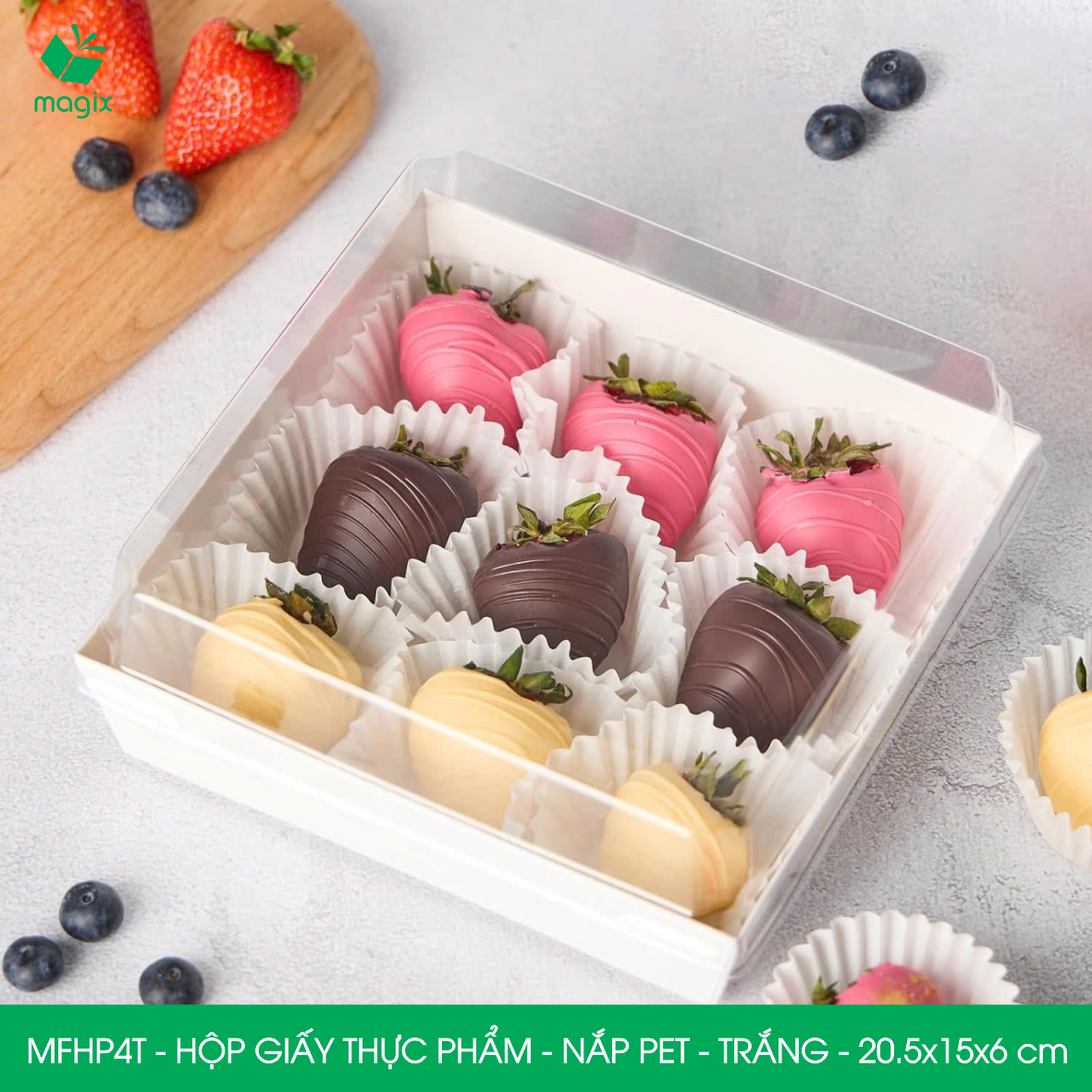 ĐẶC ĐIỂM: Nếu bạn đang cần tìm một dòng sản phẩm hộp đựng thức ăn có nguồn gốc xuất xứ rõ ràng, an toàn với sức khỏe người tiêu dùng và giảm thiểu ngộ độc thực phẩm trong quá trình bán buôn thức ăn, thì hộp giấy đựng thực phẩm nắp PET của MAGIX là một sự lựa chọn tối ưu.