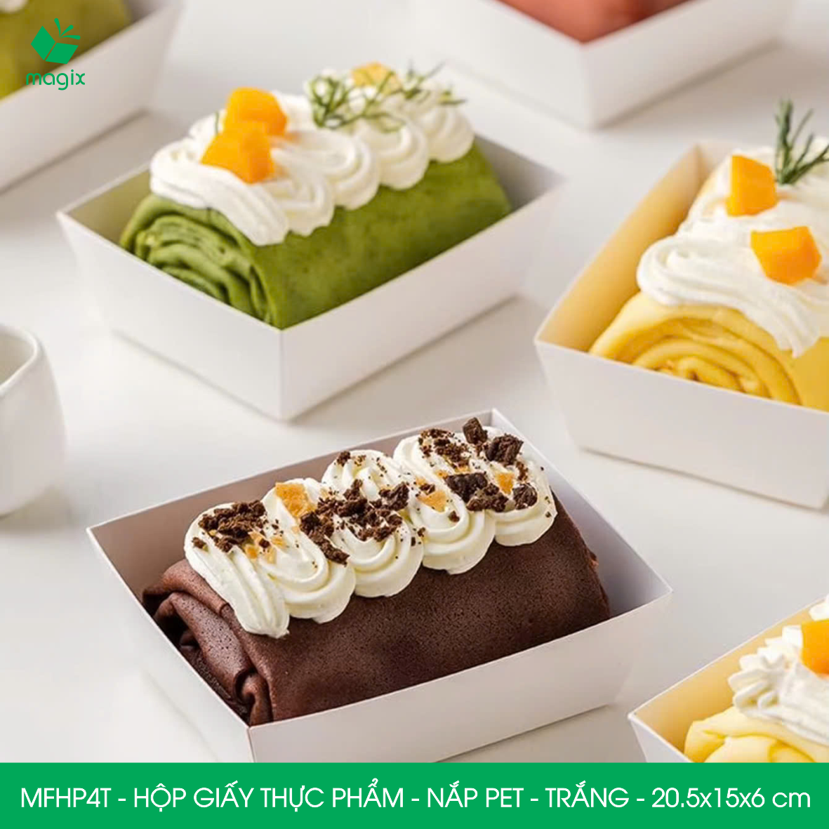 ✨MFHP4T - 20.5x15x6 cm -50 hộp giấy thực phẩm màu trắng nắp Pet, hộp giấy chữ nhật đựng thức ăn, hộp bánh nắp trong