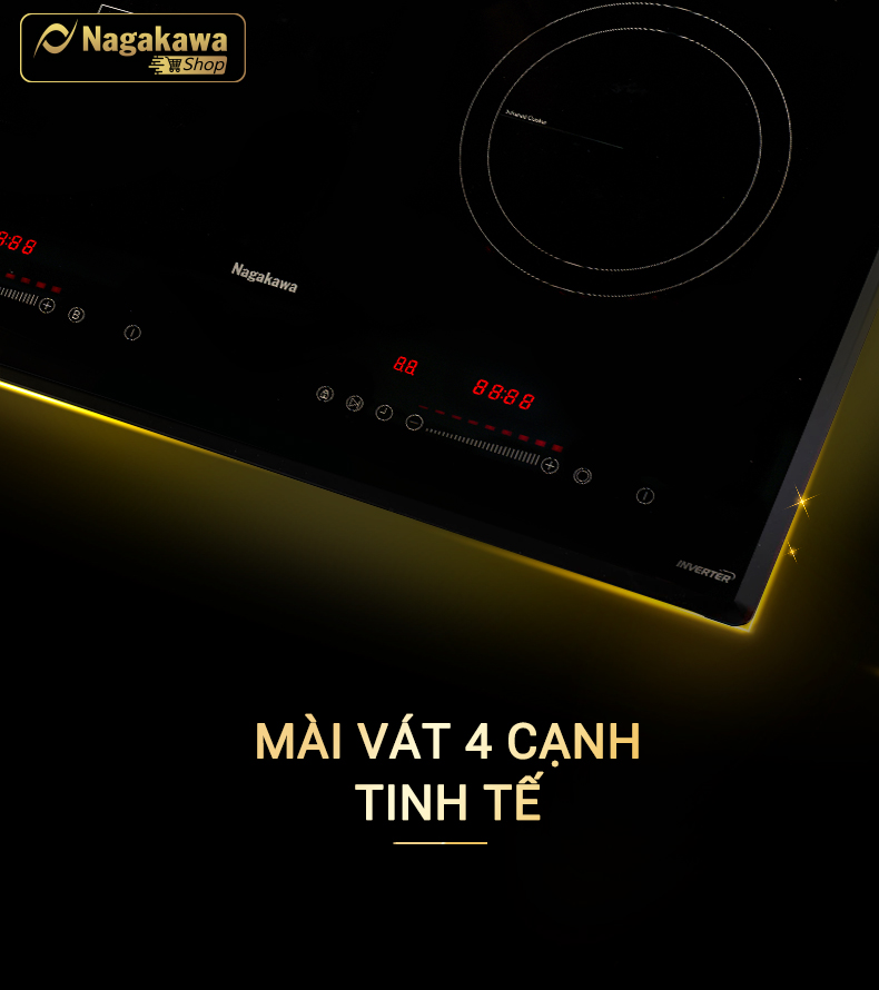 Đặc điểm nổi bật Bếp được tích hợp chức năng NaSYNC - Tự động kết nối điều khiển máy hút mùi nagakawa - Mỏng hơn 30% tiết kiệm không gian tủ bếp - Vật liệu