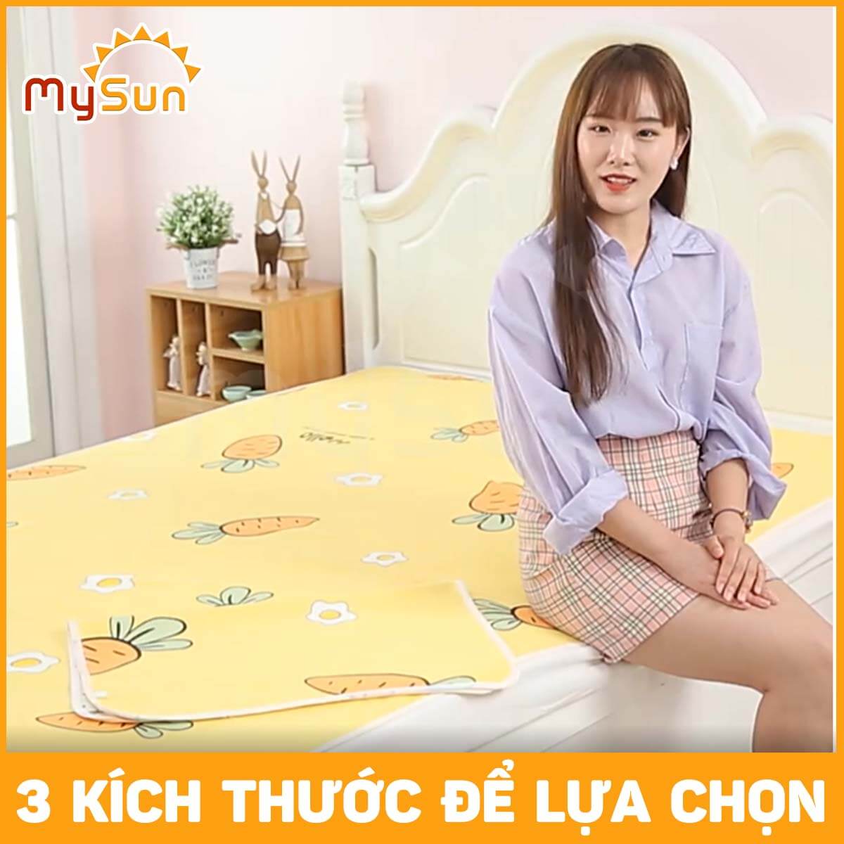 - Tấm thảm lót chống thấm MySun có nhiều kích thước cỡ lớn, vừa, nhỏ phù hợp để trải giường, cũi, đệm, mặt sàn…