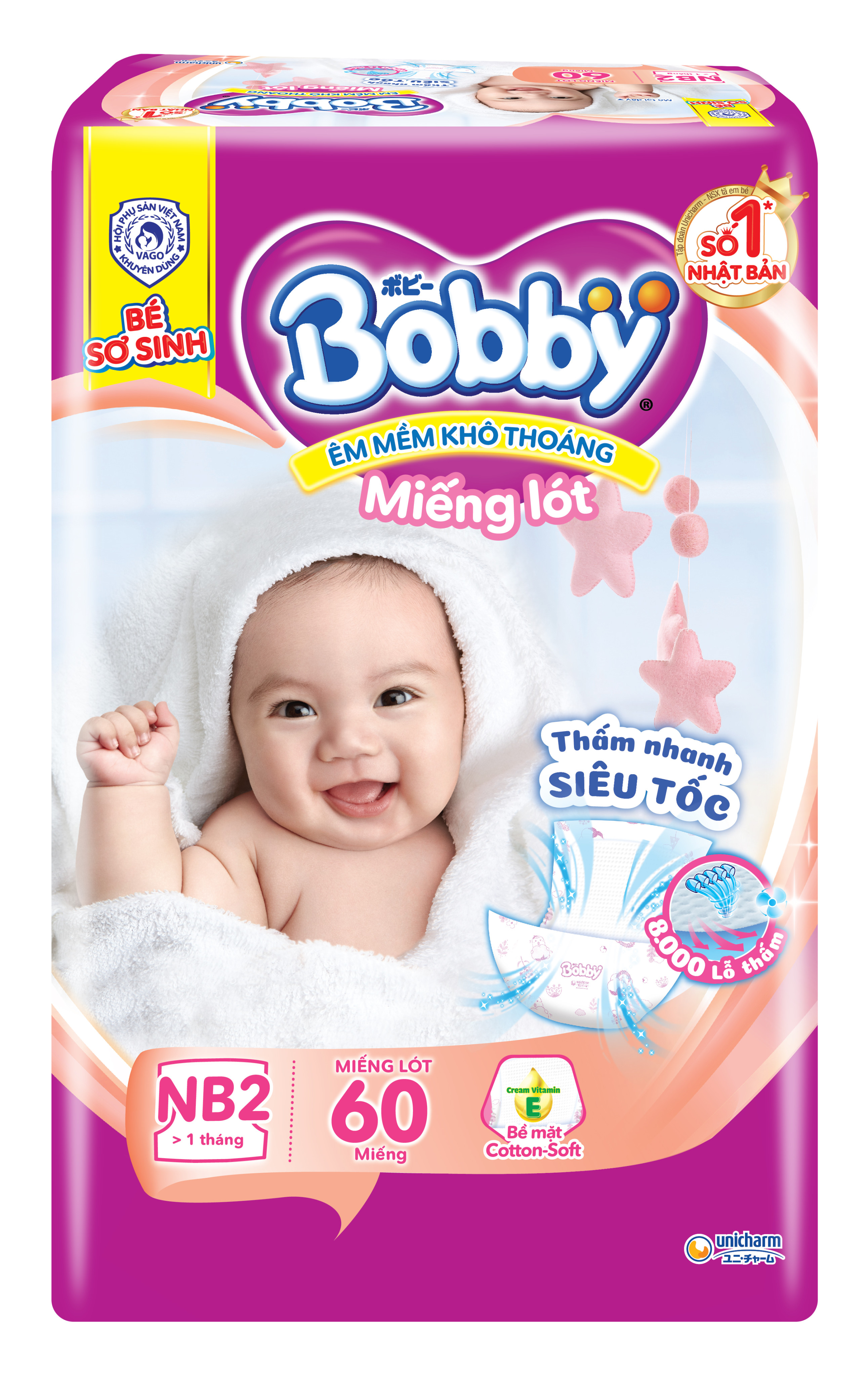 Miếng lót sơ sinh Bobby Newborn 1: Dành cho trẻ trên 1 tháng tuổi.