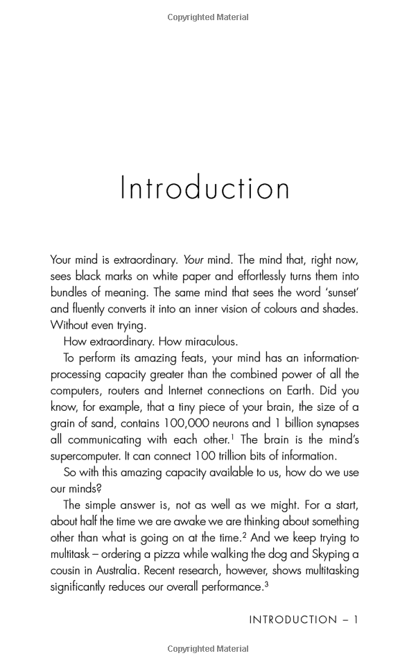 IT TAKES JUST TEN MINUTES a day train your mind – you will feel more awake, more alive and more creative. Using these carefully researched exercises you can increase your attention span, realise your potential and use your mind to its full capacity. Yes, just ten…short … minutes.