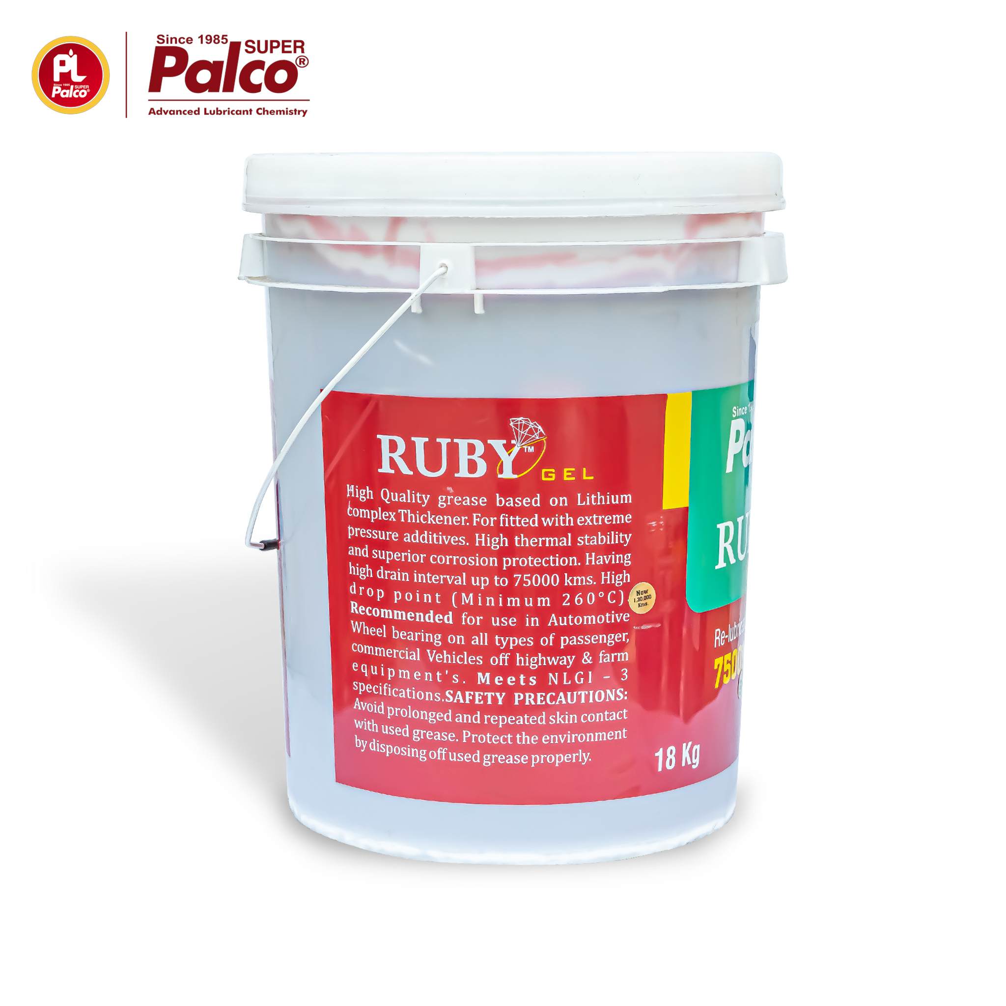 GIỚI THIỆU SẢN PHẨM MỠ BÒ ĐỎ CHỊU NHIỆT PALCO RUBY GEL: PALCO Ruby Gel thuộc dòng sản phẩm mỡ bò chịu nhiệt và chịu cực áp cao cấp nhất trên thị trường mỡ bôi trơn vận tải và công nghiệp hiện nay. Sản phẩm có màu đỏ trong suốt. Mỡ bò đỏ Ruby Gel được sản xuất từ dầu gốc tổng hợp, chất làm đặc gốc phức Lithium cùng phụ gia EP. Nhiệt độ nhỏ giọt của mỡ bò đỏ Ruby Gel trên 260 độ C. Độ xuyên kim NLGI 3 (ứng dụng phổ biến nhất). Khoảng thời gian thay mỡ bò Ruby Gel lên đến 130.000 KM. Sản phẩm mỡ bò đỏ chịu nhiệt cao cấp Ruby Gel được nhập khẩu 100% từ nhà sản xuất hàng đầu Ấn Độ PALCO – đối tác cung cấp mỡ bò cho hàng loạt doanh nghiệp lớn nhất Ấn Độ.