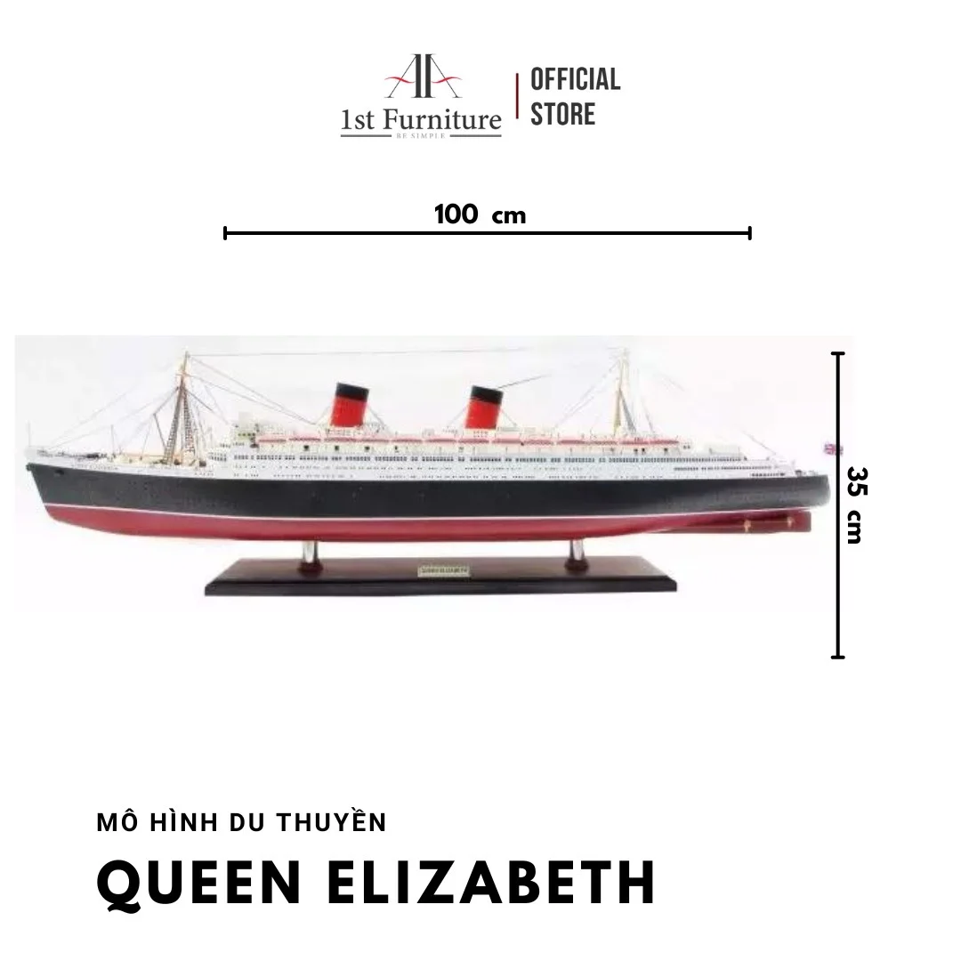Thông tin sản phẩm: MÔ HÌNH DU THUYỀN QUEEN ELIZABETH - CON TÀU CỦA HOÀNG GIA ANH - Mô hình du thuyền QUEEN ELIZABETH có kích thước là 0.08cm3: Cd: 100cm Crg 14cm Cc: 35cm