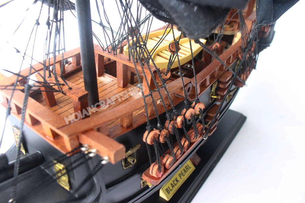 • Thân thuyền, cột buồm được làm hoàn toàn bằng gỗ và được phủ lớp sơn đen tuyền mạnh mẽ bên ngoài như chính bản gốc trong phim