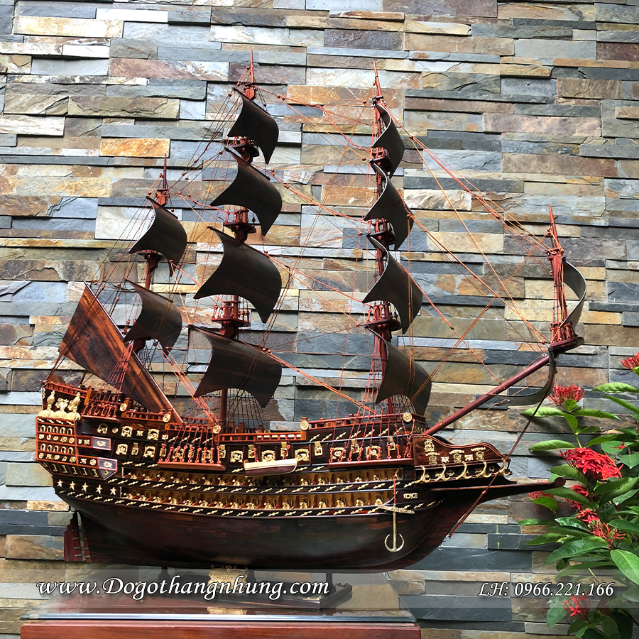 MÔ HÌNH THUYỀN CỔ FRANCE II - TÀU BUỒM CỦA PHÁP - Mô hình thuyền cổ FRANCE II có 4 kích thước 0.07m3, 0.16m3, 0.23m3 và 0.30m3: +0.07m3 có kích thước là: Chiều dài: 70cm