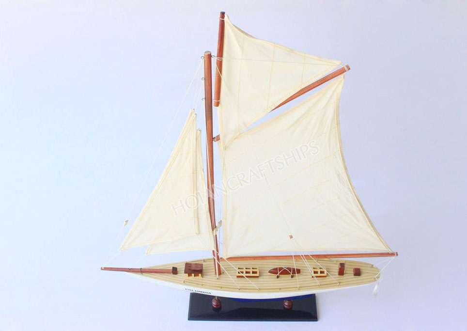 • Thân thuyền và cột buồm bằng gỗ, cánh buồm được cắt may khéo léo bằng vải.