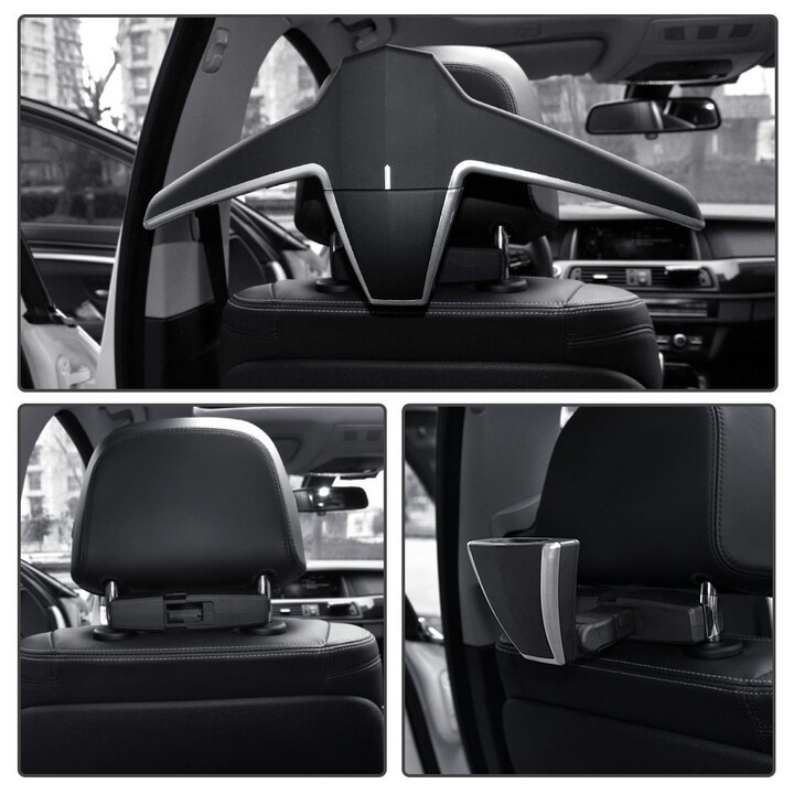 - Thiết kế đa năng vừa treo đồ, vừa làm kẹp điện thoại để băng ghế sau thoải mái sử dụng thiết bị - Móc xoay 360 độ tiện lợi ra phía trước hoặc phía