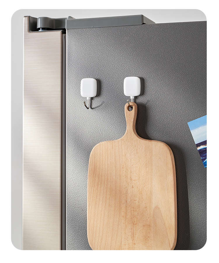 Bộ gồm 2 móc hút nam châm dính KM 520 màu trắng, dính chắc trên bề mặt kim loại, chịu tải 1kg