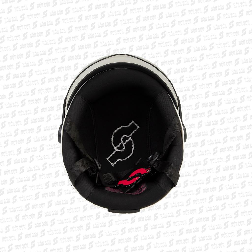 • Phần logo NÓN SƠN được gắn trên vỏ nón bảo hiểm Nón Sơn được làm từ da thật.