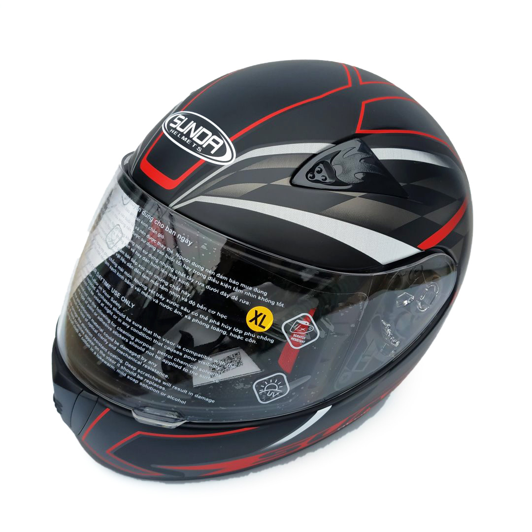 Mũ bảo hiểm fullface Sunda 2000c đen nhám tem đỏ: