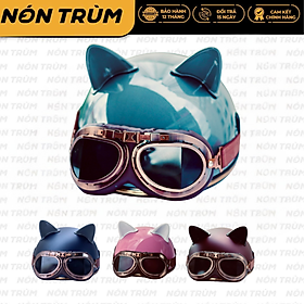MŨ BẢO HIỂM XE MÁY NỬA ĐẦU RONA LUXURY KÈM KÍNH PHI CÔNG VIỀN ĐỒNG - TẶNG TAI MÈO