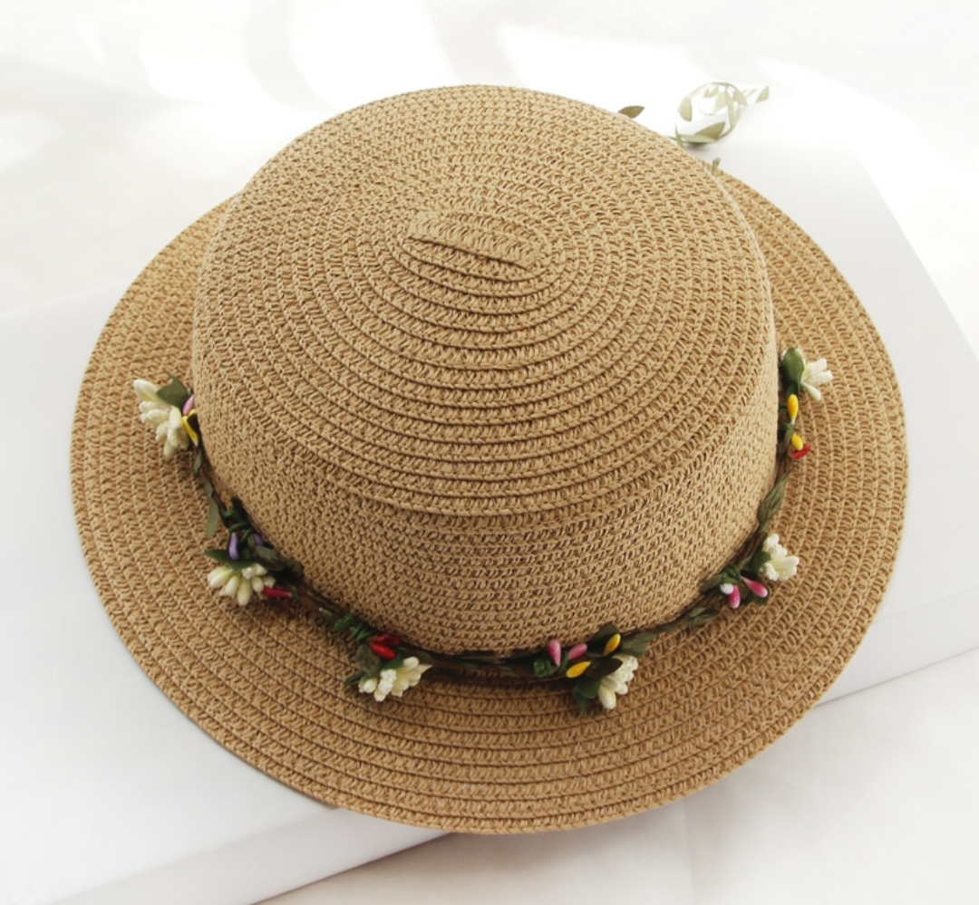 ✨Mũ đi biển đẹp nón rộng vành nhỏ đai hoa lá thời trang Hàn Quốc dona22041904