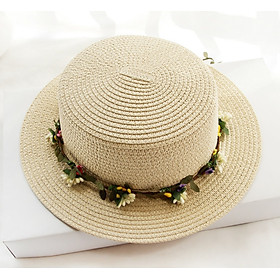 Mũ đi biển đẹp nón rộng vành nhỏ đai hoa lá thời trang Hàn Quốc Chất liệu cói