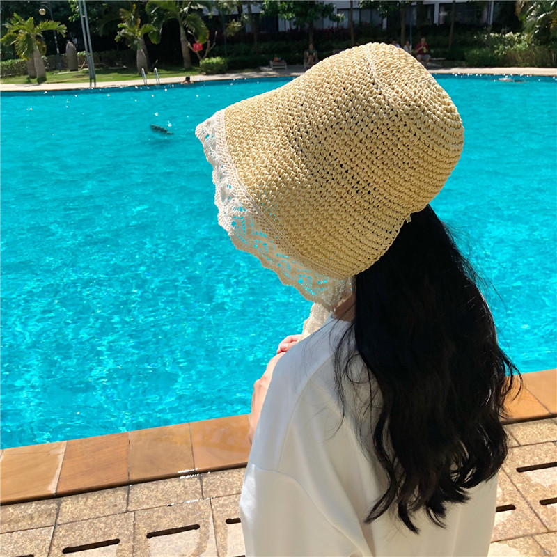 ✨Mũ nón đi biển nón rộng vành chống nắng gấp gọn thoáng mát phối ren sành điệu dona23091001