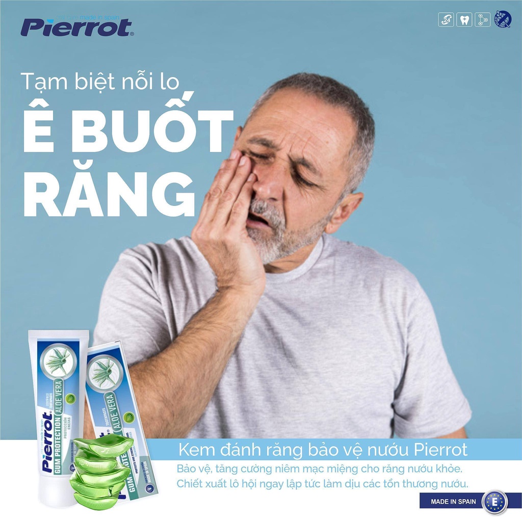 Mua tại TiktokKem đánh răng chiết xuất lô hội bảo vệ nướu Pierrot giúp bảo vệ và tăng cường niêm mạc miệng cho răng nướu khỏe mạnh. Chiết xuất lô hội ngay lập tức làm dịu các tổn thương nướu. Chiết xuất hoa cúc có khả năng kháng khuẩn ngăn ngừa sưng nướu. Chiết xuất Allantoin giúp tái tạo và bảo vệ niêm mạc nướu bị tổn thương. Fluoride ngăn ngừa mảng bám tích tụ và chống sâu răng hiệu quả. Hướng dẫn sử dụng: