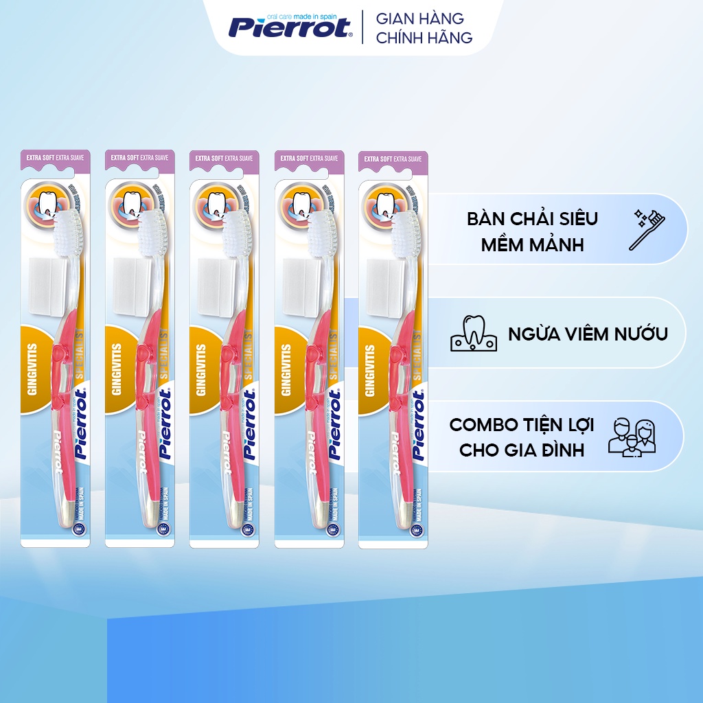 - Bàn chải đánh răng siêu mềm chống viêm nướu PIERROT GINGIVITIS giúp chải sạch răng và nướu một cách nhẹ nhàng nhờ cấu tạo lông bàn chải mềm mảnh.