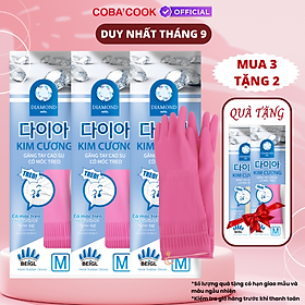 [Mua 3 Tặng 2] Bộ 3 Đôi Găng Tay Cao Su Tự Nhiên Có Móc Kim Cương Hàn Quốc Size M-37cm Xuất xứ thương hiệu: Hàn Quốc Sản xuất tại: Việt Nam Size M: +/-
