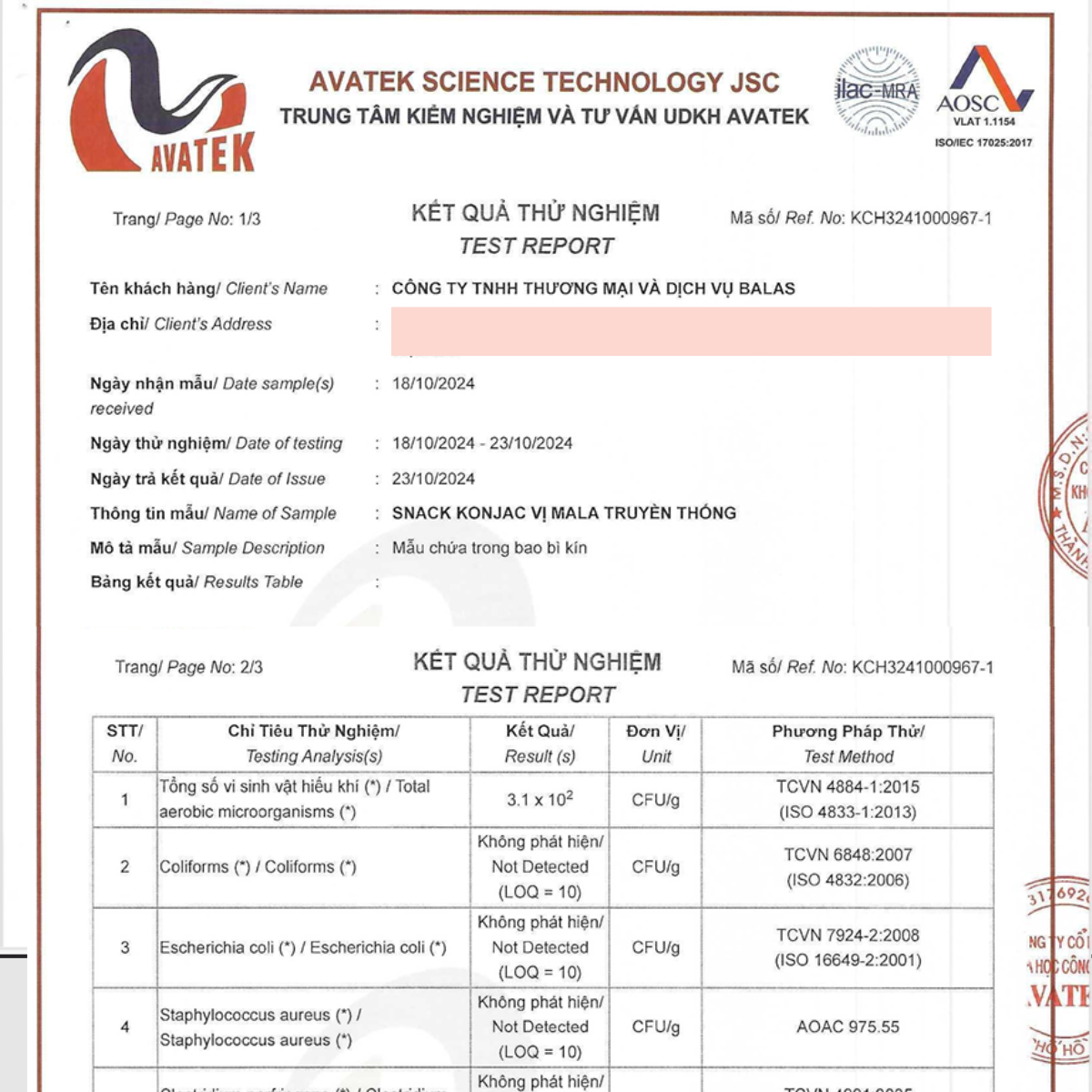 Tên sản phẩm: Snack rong biển Kabuki vị truyền thống - Thành phần: Rong biển (95%), đường (3%), gia vị (2%) [đường, muối, protein thực vật đã hydro hóa, tỏi, tiêu, chất điều vị gồm: