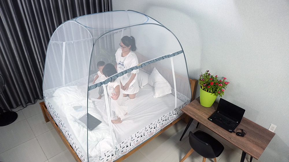 Mùng chụp đỉnh rộng khi không sử dụng có thể xếp gọn lại