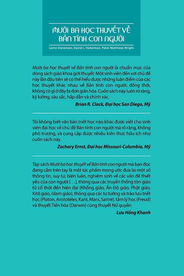 Tập sách Mười Ba Học Thuyết Về Bản Tính Con Người là một tác phẩm mong ước đưa lại một số thông tin, suy tư, biện luận, nghiệm sinh về các vấn đề thiết yếu của con người nói trên, thông qua các truyền thống tôn giáo từ cổ thời đến hiện đại (Khổng giáo, Ấn Độ giáo, Phật giáo, Kitô giáo, Hồi giáo), thông qua các tư tưởng và trào lưu triết học (Platon, Aristoteles, Kant, Marx, Sartre), tâm lý học (Freud), và Học thuyết Tiến hóa (Darwin).