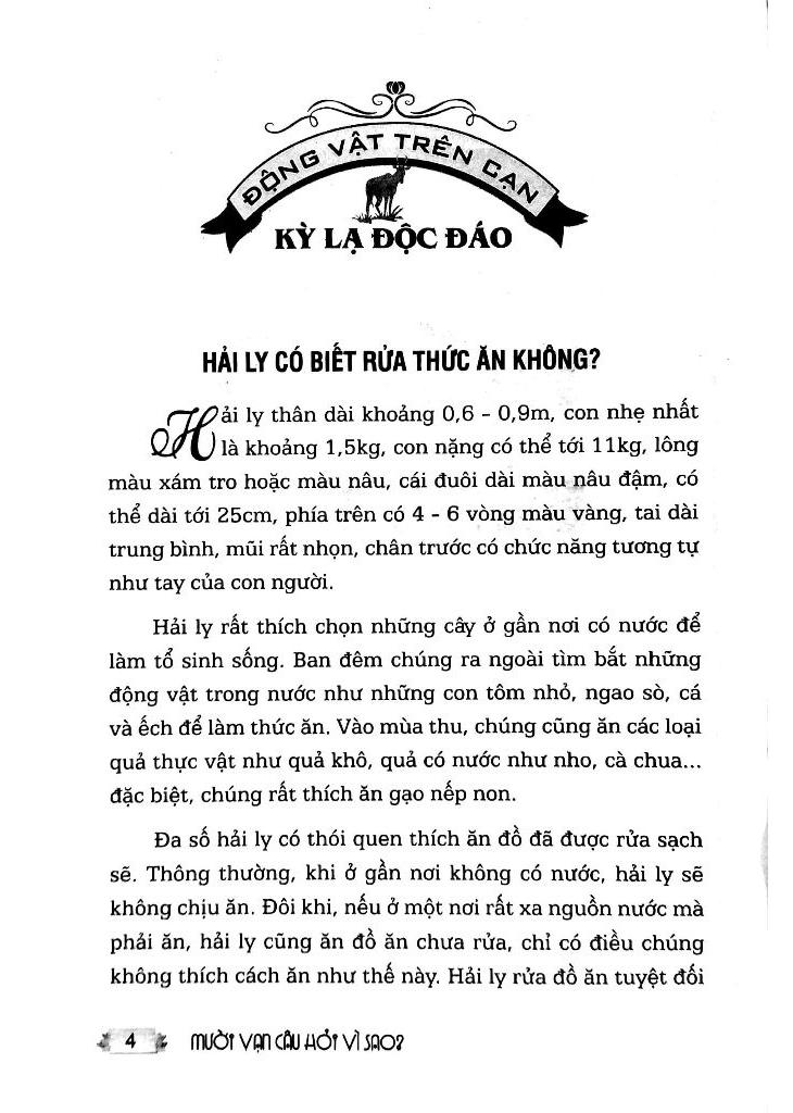 Tuổi thơ là khoảng thời gian đẹp nhất trong cuộc đời mỗi con người. Ở lứa tuổi này, trẻ luôn tràn trề hy vọng, cùng những ngây thơ trong sáng buổi ban đầu. Đứng trước thế giới với bao điều kỳ diệu mang trong m.ình sự tò mò, khát vọng tìm hiểu, câu nói thường thấy nhất ở trẻ là "Vì sao?" Để có thể trả lời chính xác câu hỏi của trẻ, không phải là việc đơn giản. Các nghiên cứu cho thấy, sự phát triển ở bộ não trẻ diễn ra nhanh nhất vào tuổi 13 trở về trước, là một phụ huynh khi không mang lại cho trẻ cơ hội suy nghĩ, tìm hiểu, có thể bạn sẽ phải ân hận! Thế giới ngày nay phát triển nhanh chóng, kho tàng kiến thức là vô hạn, luôn được đổi mới với tốc độ chóng mặt. Cũng xuất phát từ những suy nghĩ trên, chúng tôi trên cơ sở thu thập rộng rãi gần một nghìn câu hỏi mà các em nhỏ cảm thấy hứng thú, để đưa ra bộ sách Mười vạn câu hỏi vì sao?, mang lại cho các em những câu trả lời theo từng chủ đề. Cuốn sách với sự đóng góp của các chuyên gia khoa học thường thức giàu kinh nghiệm, sử dụng ngôn ngữ dễ hiểu, kết hợp những hình ảnh minh họa sinh động sẽ mang đến cho các em những kiến thức cơ bản, chứa đựng nội dung phong phú.