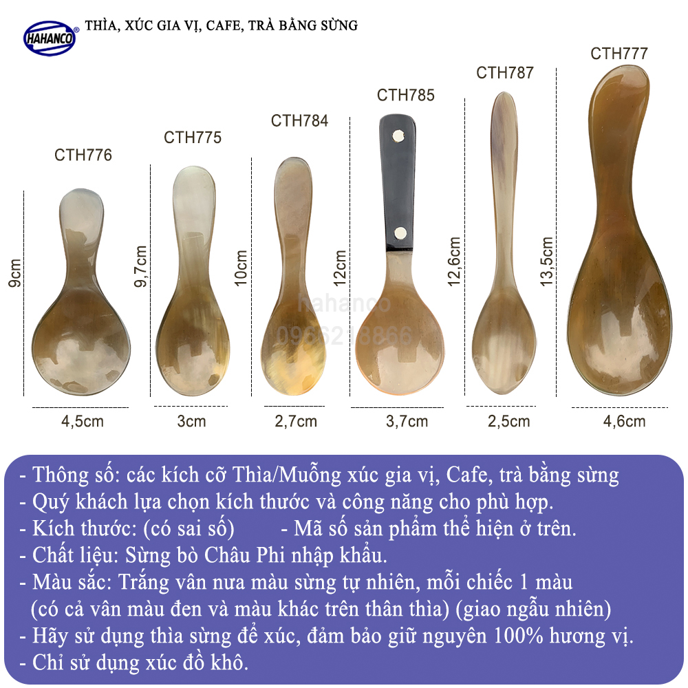 ✨Muỗng/Thìa Bằng Sừng HAHANCO (Đủ Mẫu) Xúc Gia Vị /Cafe /Trà /Giúp Gia Vị Không Mất Mùi