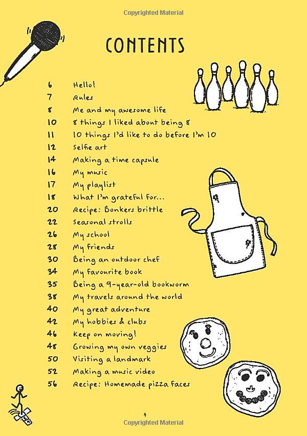With tons of activities to try and prompts to jot down day-to-day experiences, this is the perfect place for a nine-year-old to record all the fun things they do throughout the year. From bowling to burying a time capsule, making pizzas to growing your own veg, it's great for getting kids outdoors and being active indoors! And with space to fill-in, doodle and draw, the finished book will be something to treasure forever.