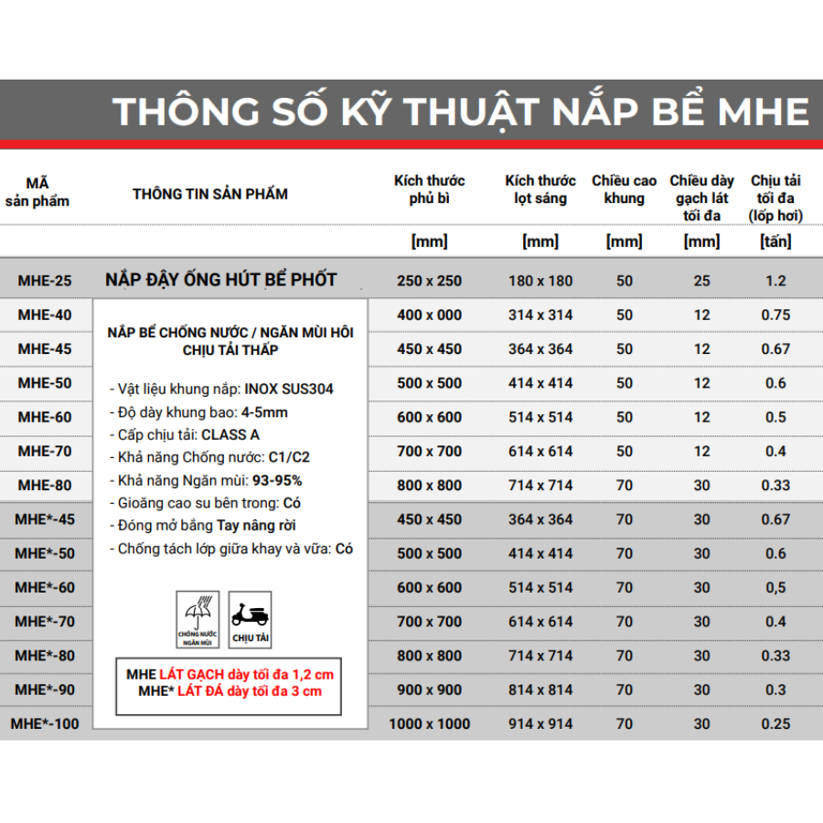 ✨Nắp bể ngầm chống nước ngăn mùi inox ZAVAK MHE*-70 / KT 70x70cm, lát gạch 3cm, tải 400kg