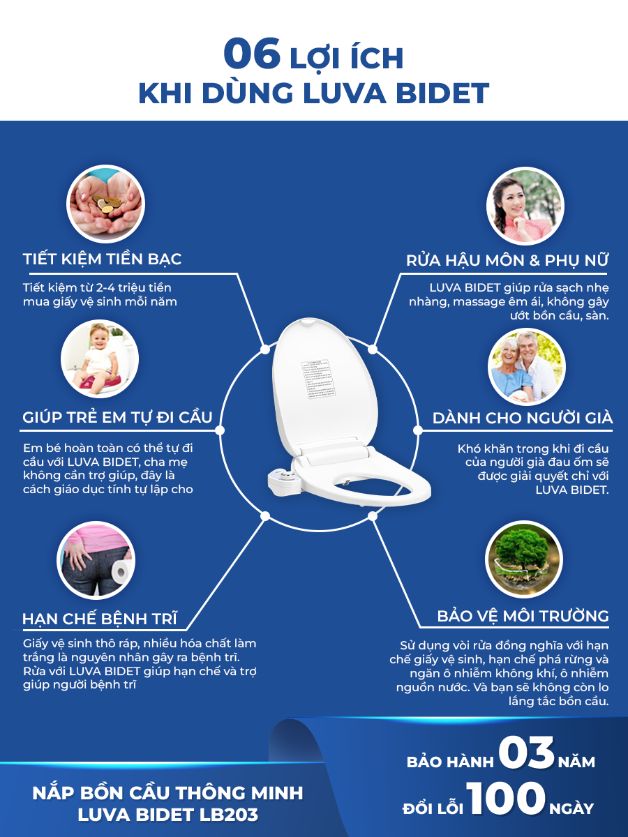 Thông tin sản phẩm: Nắp bồn cầu vệ sinh thông minh LUVA BIDET LB203