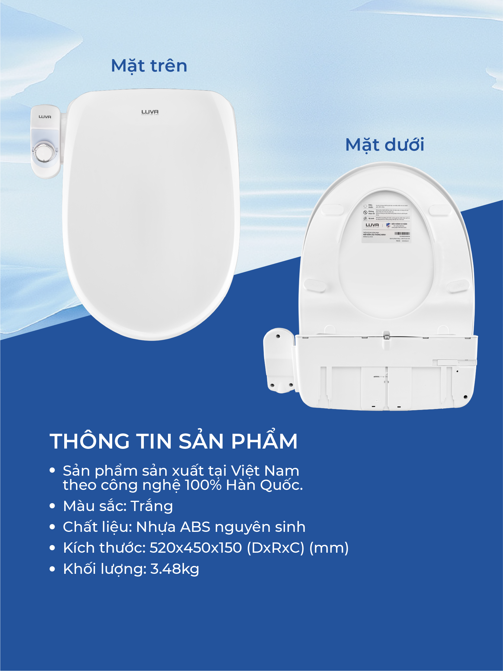 Nắp bồn cầu thông minh LUVA LB525 xuất Hàn Quốc, công nghệ hàn siêu âm