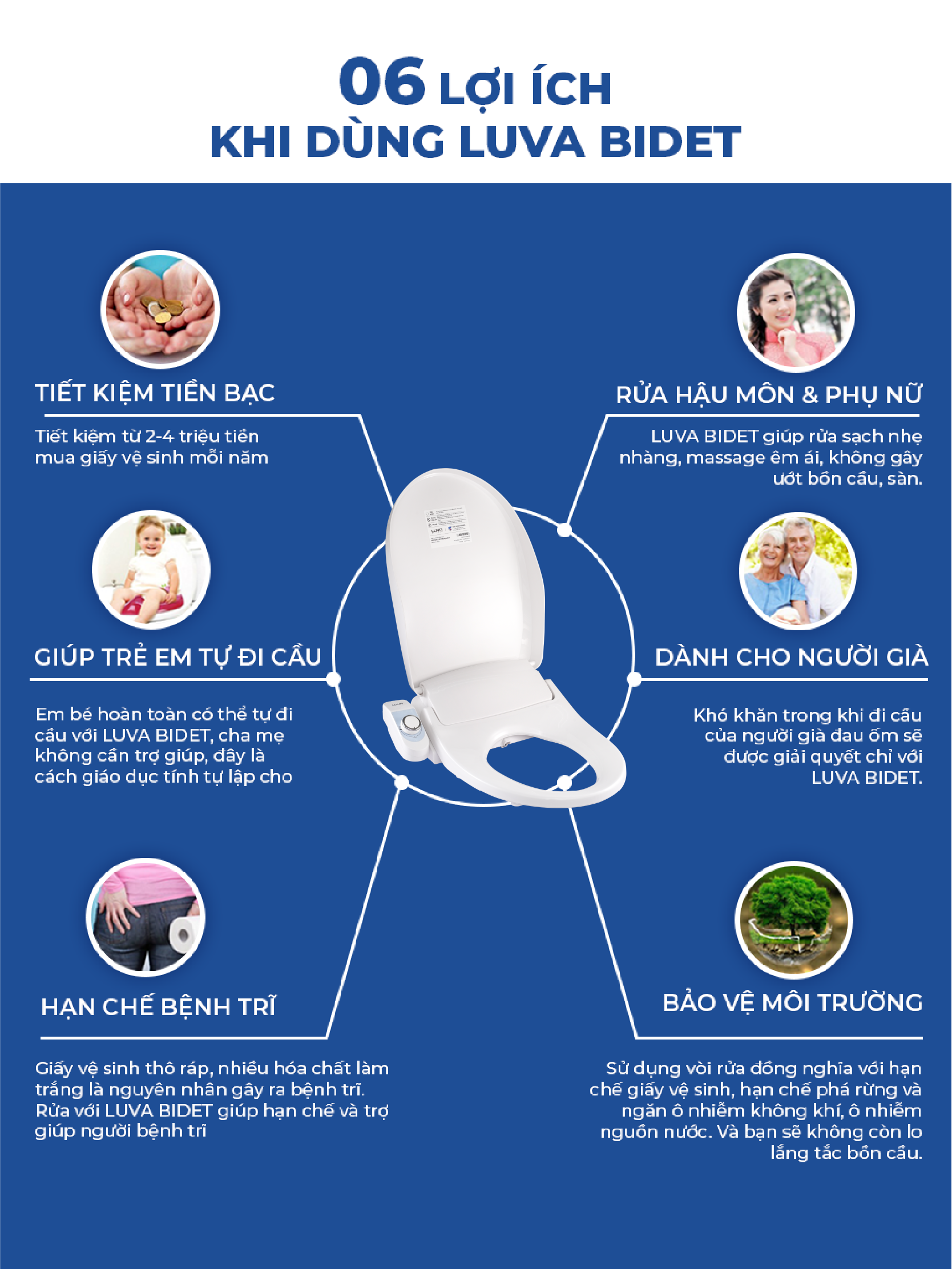 Nắp Bồn Cầu Thông Minh LUVA Bidet LB525 Xuất Hàn Quốc, Bảo Hành 3 năm, đổi lỗi 100 ngày, công nghệ hàn siêu âm LUVA cam kết nói KHÔNG với bất kỳ nguyên liệu,