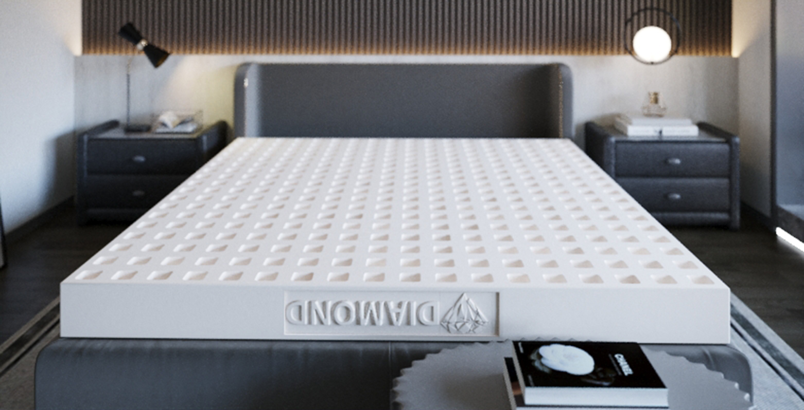 Nệm cao su kim cương Diamond Luxuryđược sản xuất từ 100% cao su thiên nhiên, được xử lý bằng công nghệ tiên tiến có khả năng tiêu diệt các vi khuẩn tác động đến da.